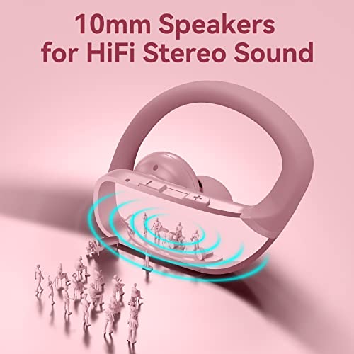 Wireless Earbuds Bluetooth Headphones 48hrs Play Back Sport Earphones with LED Display Over-Ear Buds with Earhooks Built-in Mic Headset for Workout Pink BMANI-VEAT00L